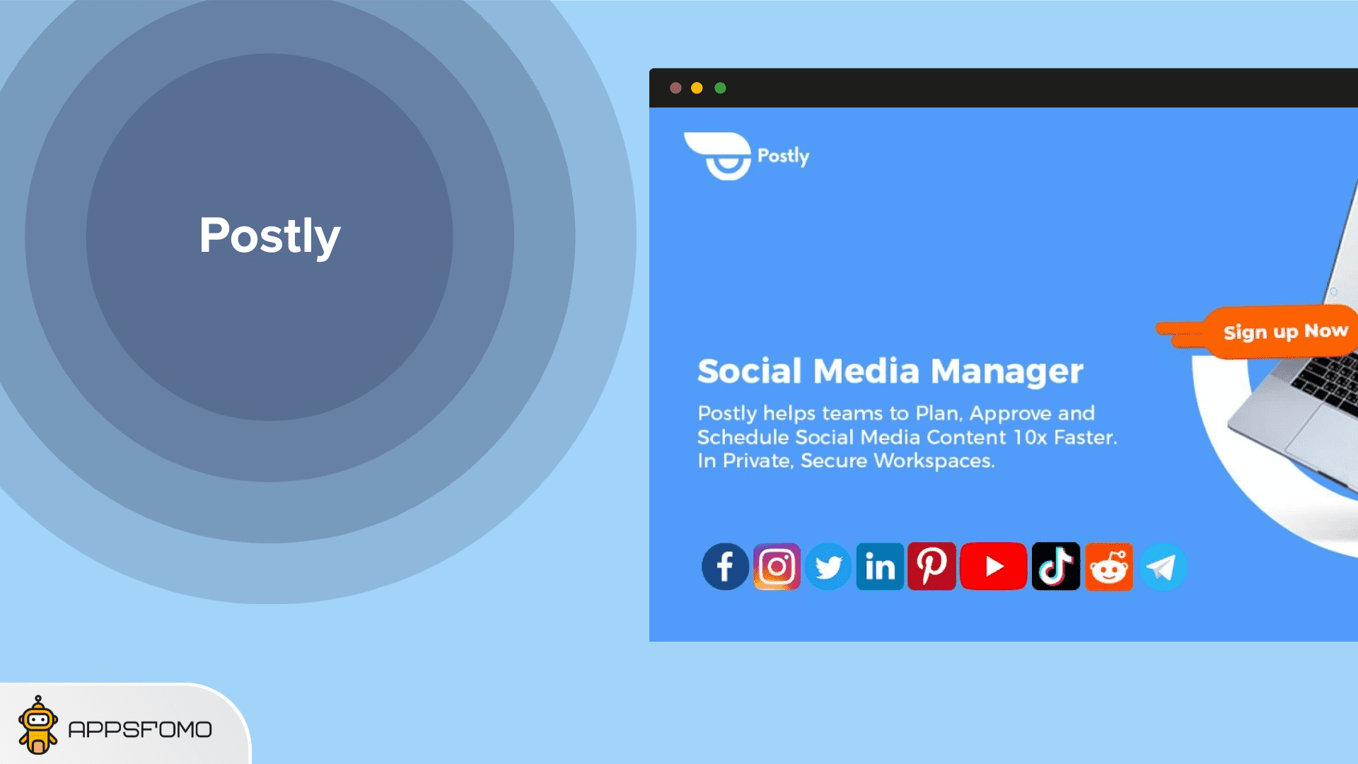 Postly is an all-in-one social media management platform with AI writing, image editing, and one-click publishing to 10+ social networks including Facebook, Instagram, LinkedIn, TikTok, YouTube, and Pinterest.